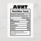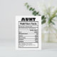 Funny Aunt Nutrition Facts Postcard
