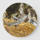 Pictured is a closeup up look at a baby bearded dragon lizard with a fake hand held magnifying glass