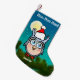 This cute Christmas stocking features a funny owl with Santa hat and rosy cheeks on a Douglas-fir twig. Customise it with any name and message you like and surprise someone dear with your amazing Xmas spirit!
