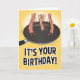 Here's a funny birthday card featuring some dancing bacon who want the birthday person to start shakin' his or her bacon. This card sizzles!