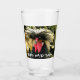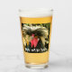 Pint glass for beer and other cold beverages that features a funny photo image of a rooster chicken having a bad hair day.