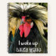 Standard size, spiral bound notebook for home, school, or office that features both front and back covers with the photo image of a funny looking rooster chicken that woke up having a bad hair day along with funny meme, "I Woke Up Like This." Select your notebook style options.