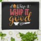 Funny Baking Pun Whip It Good Yellow Plaid Pattern Tea Towel