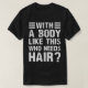 This Bald Humour Teamed Design Features With Bold Distressed Font And Funny Quotes "With A Body Like This Who Needs Hair?" It makes a great gift tee for bald men lovers with a sense of humour and confidence. This Design Features Funny Sayings About Bald Pride And Is Great Gifts For Friends Or Family For Christmas Or A Birthday For Adults Both Men And Women And For Teens Kids Both Boys And Girls Who Love Funny Workout Or Gym Tees