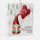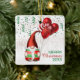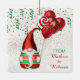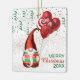 This cute Holiday ornament makes a fun gift for anyone! The front and back feature a funny little white bearded gnome wearing a satin red Santa hat and a red and green striped jacket. He is holding a bunch of red balloons. Behind him is green and gold confetti. The green and red text at the bottom right gives a greeting and the year you choose. The back of the ornament has two more text fields for you to customise.
