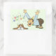 Funny Basset and Man Celebrate New Years Cartoon Rectangular Sticker