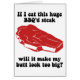 If I eat this huge BBQ'd steak, will it make my butt look too big? Funny barbecue aprons, t-shirts and bbq gifts for friends and family who love to barbecue. Cool and humourous bbq aprons, tees and barbecue gifts for calorie counters!