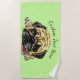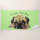 Pug Dog Funny Beach Towels with Custom Text - MIGNED Painting - Customisable - Choose / Add Your Text and Colours