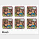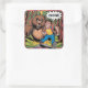 Funny Bear Chase "I'm Fine" Cartoon Illustration Square Sticker