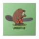 Funny beaver with chainsaw cartoon humour ceramic tile