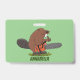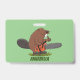 Funny beaver with chainsaw cartoon humour ID badge