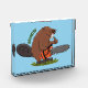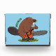 This happy beaver is ready to build his lodge with a chainsaw. Drawn in fun cartoon illustration style!