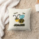 Throw pillow with cute bee on beige background