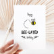 Happy bee-lated birthday - funny pun birthday card with a minimalist illustration of a cute bee