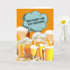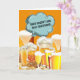 A fun and humorous graphic design featuring beer mugs with frothy tops resting on top of pretzels and yellow cheese set against a background color of your choice. The outside says, beer doesn't ask silly questions and the inside, it understands! This card is perfect for any special celebration that the guys want to celebrate with the men - retirement; farewell; congratulations; graduation; new dad; new job; new business.