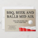 "BBQ, Beer & Balls Mid Air." A funny beer pong BBQ invitation for the bold and the buzzed. Perfect for a diaper party for the dad-to-be.