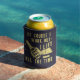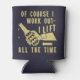 This funny foam beer can cooler / hugger / cosy shows a grungy image of a hand holding a cold beer bottle with the words, "Of Course I Work Out - I Lift Beer All the Time" done in a beige-yellow lager beer colour. The background is dark blue but can be customised. The design repeats on the back.