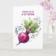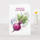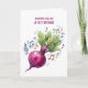 Personalized "up beet" birthday card illustrated with a beetroot and musical notes. Editable white background and beetroot colored text - easy to add more text to the inside of the card.