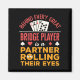Funny bridge card game gift that says, "Behind every great bridge player is a partner rolling their eyes."