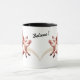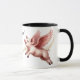 Here's a cute mug for anyone who loves the phrase "When pigs fly". Two smiling pink pigs have sprouted wings and are joyfully flying. Behind the pig images is a trail of gold faux glitter and swirls. The image is repeated twice on the mug, with the customisable text "Believe!" in black between them. Sure to bring some smiles at the office!