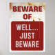 Funny 'Beware Of' sign poster with a humourous twist: 'Beware... Just Beware.' Perfect for quirky wall decor or a humourous warning sign.