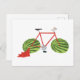 Anyone for watermelon juice? A cute illustration of a funny bicycle with watermelon wheels and a flat watermelon tire. Ideal Christmas present, birthday gift or for anyone who loves modern art, bicycles, cycling, watermelons, summer or simply unique one of a kind designs.
