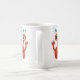 Cute monster mug with a vector illustration of a cartoon character in orange colour with blue nails and eyelashes smiling happily showing its teeth.