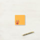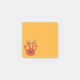 Cute monster post-it notes with a vector illustration of a cartoon character in orange colour with blue nails and eyelashes smiling happily showing its teeth. This cute character design has warm yellow and orange colours. Its background colour is customisable.