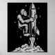 Funny Bigfoot Flying Into Space With Stars And Cos Poster