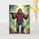 Funny Birthday card for a husband with an illustration of a Bigfoot holding a birthday cake and two beers. Add some funny humour to his day with this silly sasquatch card!