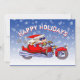 Funny tough looking cartoon Santa on his motorbike while snowing. The font is slightly rough around the edges just as the Santa with attitude. The front text "Happy Holiday" can be changed if you want to. On the backside of the card there is a placeholder text for your holidays greetings and your names (change the fictional names to the names of your family).