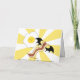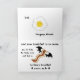 Funny and silly greeting card with a kawaii vampire bacon with bat wings and a poor egg victim with bite wounds on a pale yellow background on it. Worded as a birthday breakfast out invitation. All text can be customised or removed.