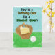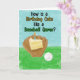 Give your favourite baseball player or fan a chuckle with this funny birthday card. It features a painted illustration of a baseball glove with a slice of birthday cake in it alongside a baseball. The message on the front reads: How is a Birthday Cake like a Baseball Game? The message on the inside reads: You can't have either without a Batter! HAPPY BIRTHDAY!