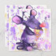 Happy Birthday Cards - Happy Purple Mouse Eat Ice Cream - Funny Painting Cartoon Migned - Add Your Text / Name