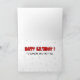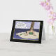 Funny cartoon birthday card of a guy on a deserted island with a small ripple in his paradise. The inside of this card says “Happy Birthday to someone who has it all.