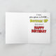 A Funny Cartoon Birthday Card featuring a cartoon Wine glass filled half way with the words “An optimist might say the glass is half full……..A pessimist might say it’s half empty….” On the front of the card. The inside of the card reads “I say: Who gives a @#$&……Bottoms Up and have a Happy Birthday”
