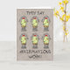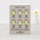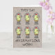 A humourous birthday card featuring six young cartoon chickens standing on springs with the words “spring chicken” over each one of them and the text “They say affirmations Work! This funny birthday wishes design is meant to poke a little fun at the idea that simply repeating a phrase over and over can make it become reality. The inside of the card reads “So . . . Do you feel any younger? Happy Birthday!”