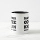 For the coffee lover. Modern black and white typographical design reads 'May your coffee kick in before reality does.' Any occasion gift for the coffee lover. Whilst the design is in black and white, Zazzle gives you the option to change the inside and handle colour.