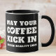 For the coffee lover. Modern black and white typographical design reads 'May your coffee kick in before reality does.' Any occasion gift for the coffee lover. Whilst the design is in black and white, Zazzle gives you the option to change the inside and handle colour.