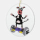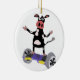 Funny Black and White Cow on Hoverboard Ceramic Ornament