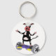 Funny Black and White Cow on Hoverboard Key Ring