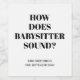 A cute, unique way to announce a baby is on the way! Set on a white background, the large black typography reads "How Does Babysitter Sound?!". Underneath, in simple modern black typography you can add your family name and due date.