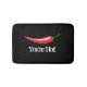 Funny black bathmat with red hot chilli pepper icon. Spicy food design with vintage typography template. Add your own personalised name, monogram or humourous quote / saying. Cute gift idea for new home. Suitable for men and women. Custom rug for bathroom or wet room.