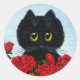 Funny Black Cat Art Roses Creationarts Classic Round Sticker