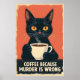 Funny Black Cat Coffee Art - Coffee Because Murder Poster