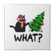 Funny Black Cat Gift Pushing Christmas Tree Over C Ceramic Tile