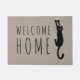 This cute kitty lover's doormat can be personalised with your family name or slogan. Black cat hanging on with claws. Makes a fun novelty gift for new home owners, newlyweds and anyone who loves a crazy black cat. Visit Jenn's Doodle World for even more pet lover doormats and funny cats home decor.