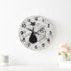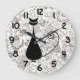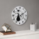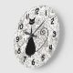 Funny Black Cat in Black and White Flower Garden Large Clock