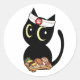 Funny black cat is a sushi chef classic round sticker