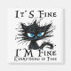 Funny Black Cat It's Fine I'm Fine Everything Is F Magnet